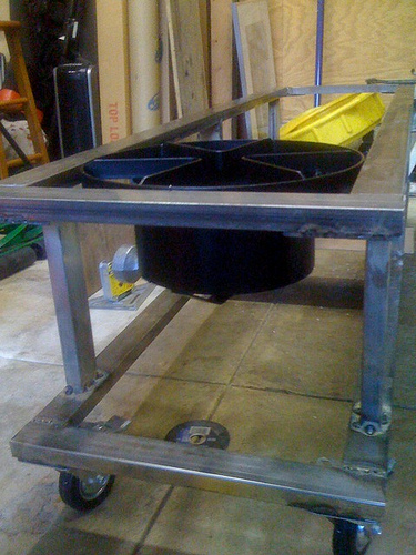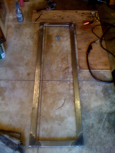 We are using 1 inch x 2 inch bar stock. I am not sure the thickness, but they are pretty beefy. This is the basic frame, gusseted with some triangles.