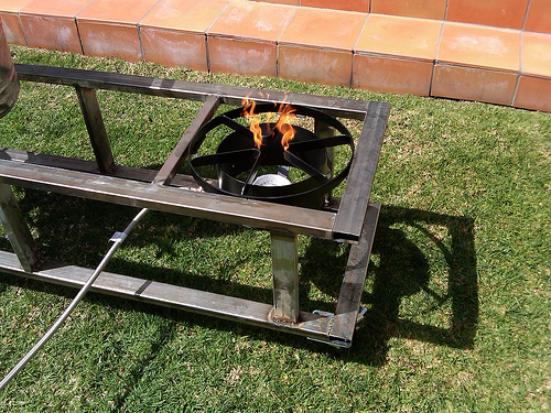 We hooked up the propane to the burners (one at a time) and cooked off the paint. This is normal and should be done the first time you use one of these type of burners. We put a keg 1/3 full of water on top to see if the flame hight was optimal. It looked good and got pretty hot after just 20 minutes of burn.