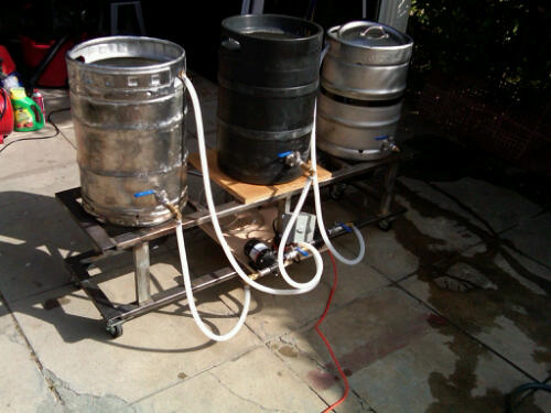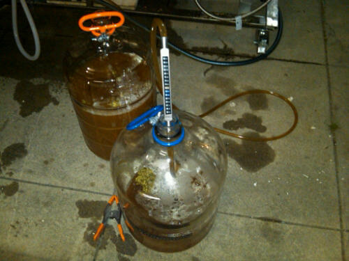 We finally got around to kegging our first whole grain brew. Pretty simple, as we both have done it dozens of times with our extract based beers. This time, however, we had the beer chilled to 40 degrees. This got the carbonation going quickly, so we were able to sample the brew within a couple of hours. It was good.