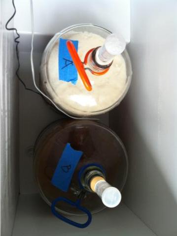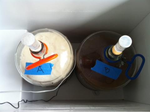 After 18 hours, our American Ale yeast is going strong. The Belgian, not so much. We pitched two vials of White Labs to boot. Hoping it is just a slow start.