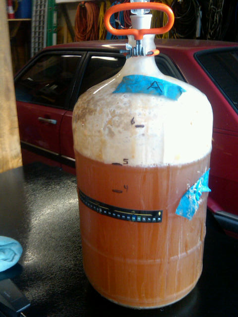 Our American yeast IPA looks ready to move to secondary. We will toss in an ounce of Centennial to dry hop. If the hybrid yeast batch is ready too (still slowly bubbling as I type) it will get racked with the same.