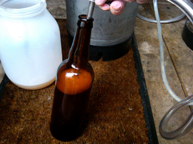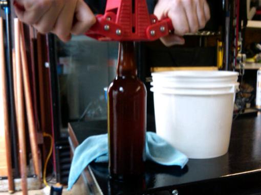 We used 3lbs of pressure to push four bottles of American Blonde and four bottles of IPA into our clean, chilled bottles. Capped them off with some color coded caps (green = IPA) and put them back in the fridge. We shall see how it works out.