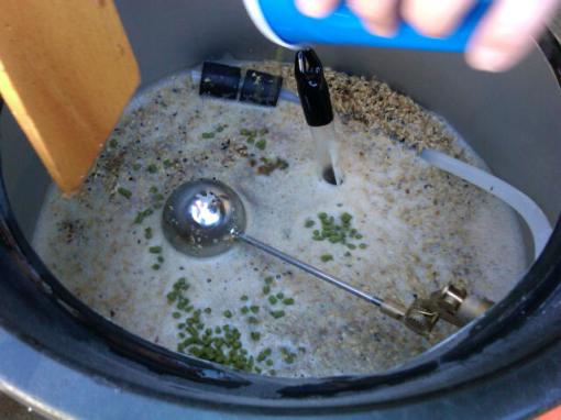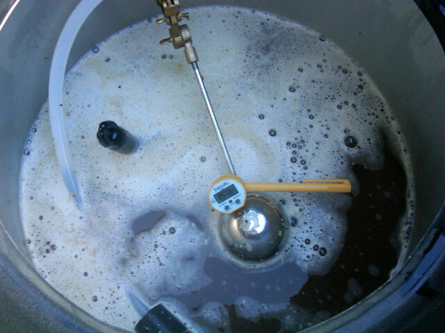 Mash in was a couple of degrees above our 154 target, but with the lid off, it quickly cooled to perfection.